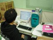 作業所は今年3月に増築が完了しており、広々と感じられました。所長の高田さんに案内されてやってきた2階で、まず驚いたのが印刷の設備。本格的な印刷用機器が所狭しと並んでいました。また、メンバーの方がパソコンを使ってデザインの作業をしておられました。パソコンに向ける眼差しからは仕事に対する真剣な姿勢がうかがわれます。